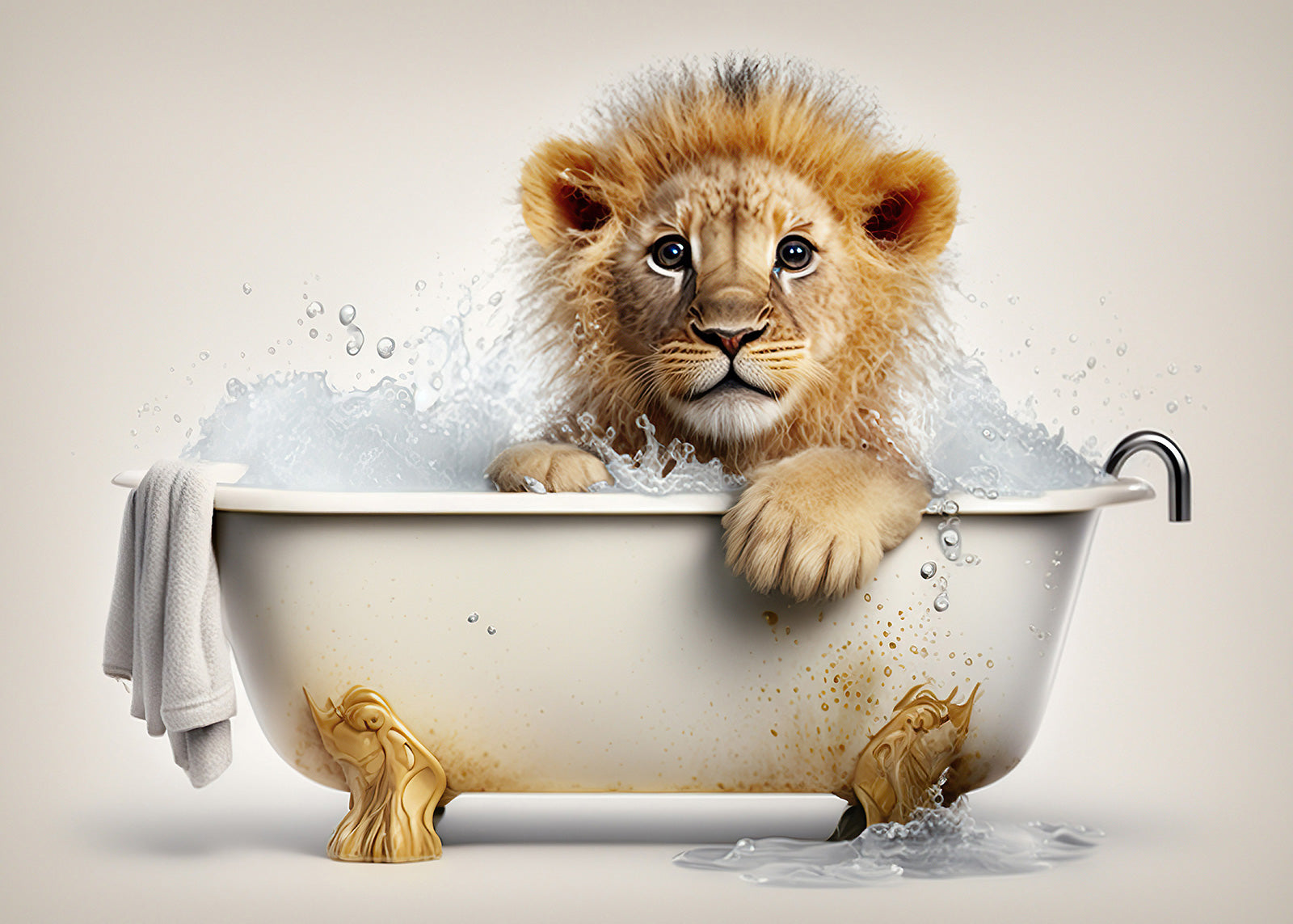 Baby Lion in Bath Digital Nursery Bedroom Artwork Wall Art Decor Poster Prints