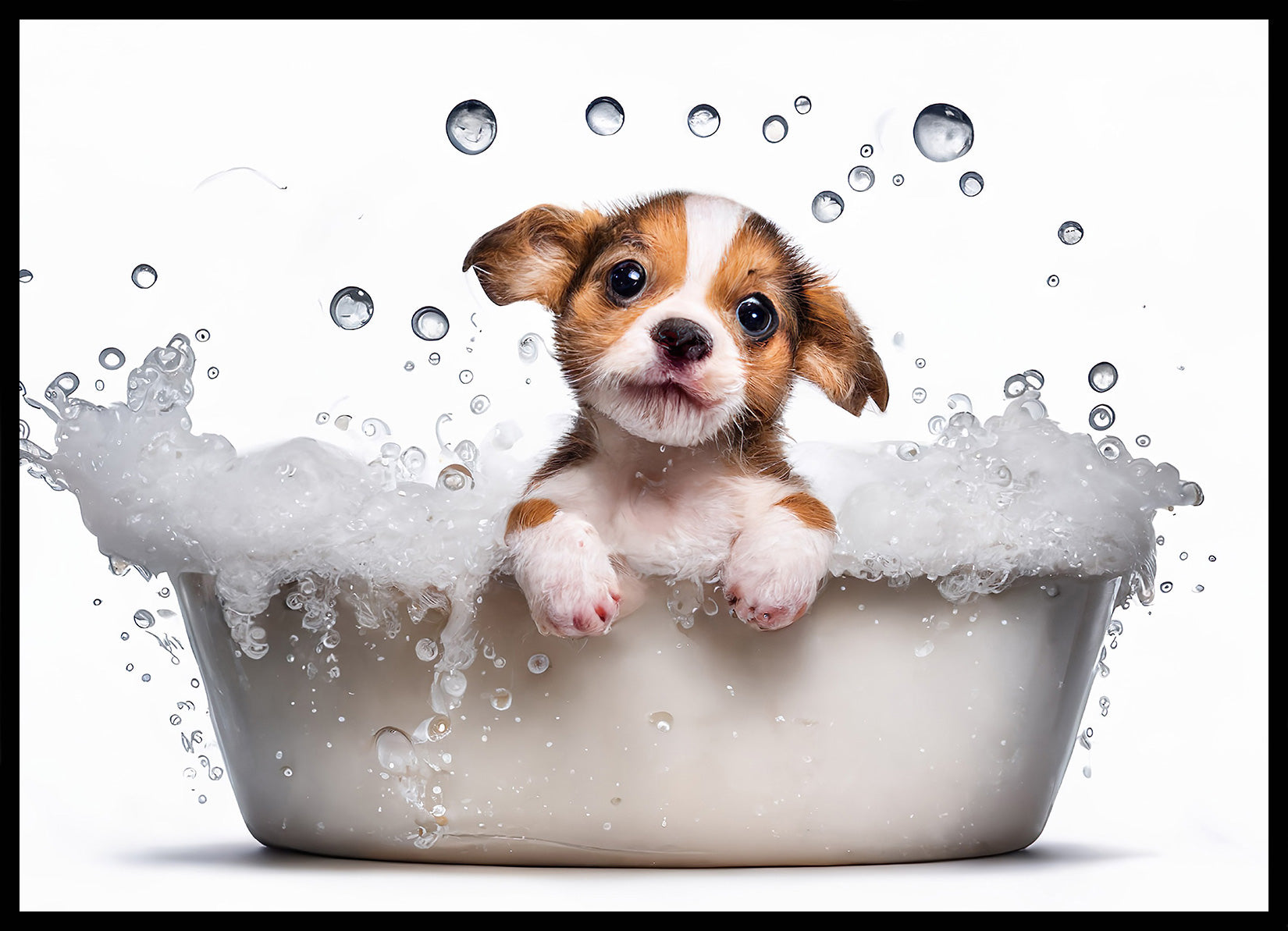 Baby Pup in Bath Digital Nursery Bedroom Artwork Wall Art Decor Poster Prints